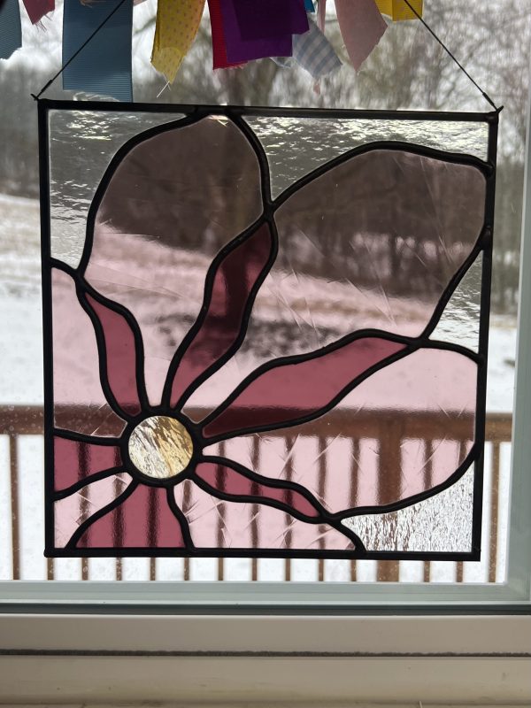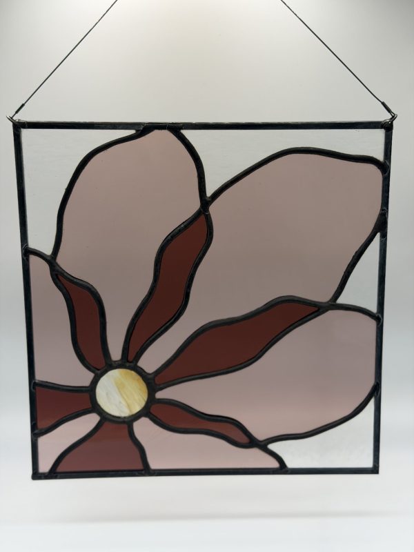 Light and dark pink poppy panel stained glass sun catcher.